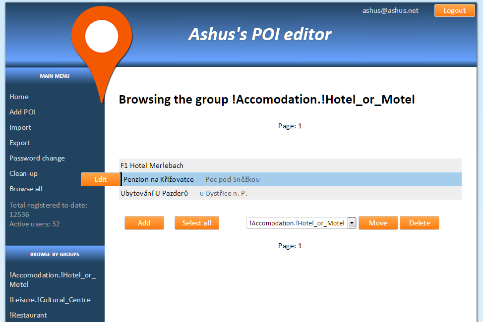 Webová aplikace pro správu bodů zájmu (POI) zařízení GPS.